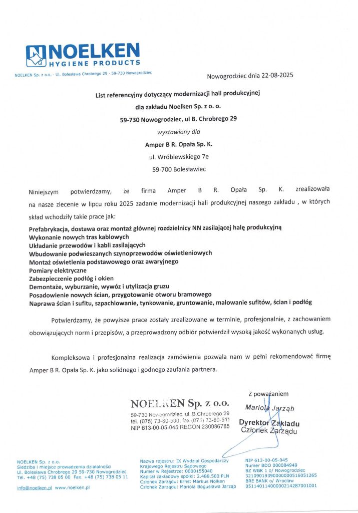 Realizujemy także kompleksowe usługi elektryczne, w tym obsługę obiektów przemysłowych oraz prace inwestycyjne na terenie Dolnego Śląska.